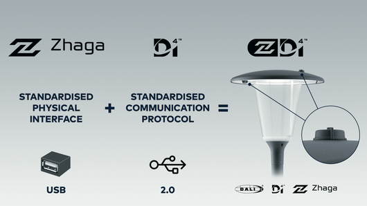 Die ZD4i-Zertifizierung ist eine Doppelzertifizierung, d. h. sie entspricht den Anforderungen des Standards DALI-2 der DALI-Alliance und dem neu geschaffenen DALI4IoT (D4I). Zusätzlich beinhaltet sie eine integrierte Schnittstelle gemäß dem Zhaga-Buch 18, 2. Auflage. Die Erfüllung dieses Standards schafft intelligente, IOT-fähige Leuchten, die kompatibel, interoperabel, kosteneffektiv und bereit für eine smarte Zukunft sind.