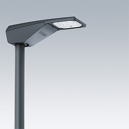 Lanterne d’éclairage routier LED extra petit avec 12 LED alimentées en 1,05A avec optique Route étroite. Driver Programmable. Classe électrique II, IP66, IK09. Corps : aluminium (EN AC-44300) Moulage sous pression, thermopoudré texturé gris anthracite 900 sablé. Fermeture : trempé plat verre. Visserie : Acier inox, traitement Ecolubric®. Montage top (Ø 60/76 mm, incliné 0°/5°/10°) ou montage latéral (Ø 34/42/49/60 mm, incliné 0°/-5°/-10°/-15°). Pour une fixation latérale à des emmanchements Ø34/42 mm, un adaptateur (59005840 R2L2 MA34/42 NPA) doit être commandé séparément. Equipé d'un 50% circuit de réduction de puissance, qui entre en vigueur 3 heures avant et 5 heures après un minuit calculé. Il peut être désactivé à l'installation avec un interrupteur interne facilement accessible. Livré avec LED 4 000 K.