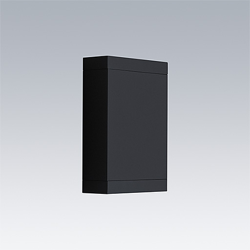 Axyl Glow fixation murale, luminaire architectural à LED pour l'éclairage décoratif des façades, avec 2 échancrures et distribution. Classe électrique III. gradable DALI-2 Déporté Driver. IP65, Résistance aux impacts : IK06. Boîtier : aluminium Moulage sous pression, thermopoudré texturé noir (similaire à RAL9005). Température de service de Température ambiante : -20°C à +50°C. Livré avec LED 4 000 K.