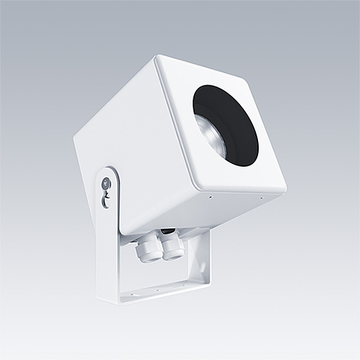 Projecteurs orientables apparents Caelon S pour l'éclairage de façades architecturales, de détails, de niches et de structures. Classe électrique I, IP66 avec. Équipés du convertisseur Sortie fixe. Corps : aluminium Moulage sous pression blanc. Vis en acier inoxydable. Température ambiante : -20°C à +25°C. Livré avec LED 2 700 K.