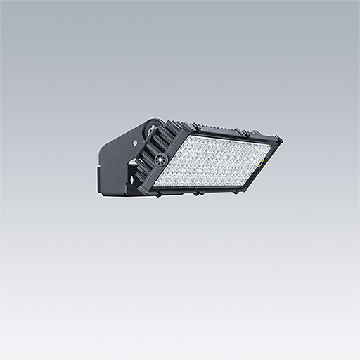 Projecteur LED haute puissance avec distribution lumineuse Optique 1 : faisceau étroit; de 168 LED. Appareillage externe, Fourni uniquement par Thorn Lighting, à commander séparément (courant de transmission maximum 1050 mA) et câblage via câble de type H07 RN-F et mini-diamètre de 13 mm. Classe électrique I, IP66, IK08. Dissipateur thermique : Moulage sous pression aluminium thermopoudré gris foncé (similaire à RAL 7043). Support de fixation et cadre : gris foncé (similaire à RAL 7043). Fermeture : 4 mm transparent verre. Fourche montée à l’aide des points de fixation disponibles (une vis M20 et deux vis M14). Fonctionnement à faibles papillotements (< 1 %) adapté à une diffusion TV haute définition. Livré avec LED 4 000 K