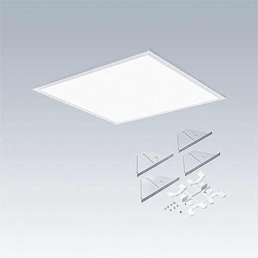 Luminaire LED encastré/plafonnier/suspension. Driver, gradable DALI-2. Classe électrique II, IP20, Résistance aux impacts : IK03. Corps : tôle d'acier, blanc (similaire à RAL9016). Diffuseur : Polycarbonate (PC) anti-UV. Optique microprismatique pour un espacement maximisé. Connexion électrique via borniers à poussoirs, avec repiquage possible.