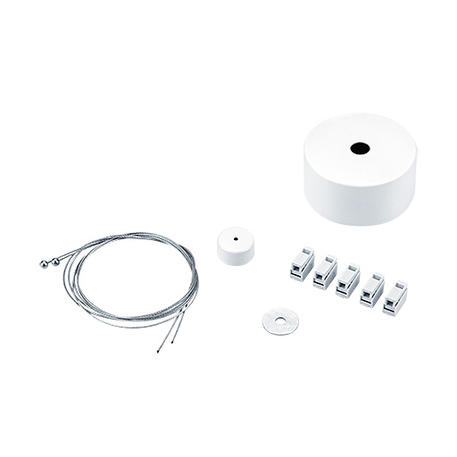 1 x rosace de plafond ronde en blanc, 5 x raccords électriques, 1 x élément de fixation au plafond blanc , 2 x fils de suspension (3 m), 1 x rondelle