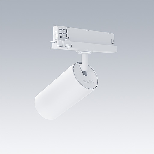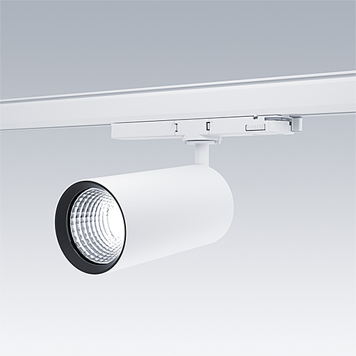 Projecteur LED pour installation sur rail triphasé avec distribution lumineuse de type projection large et température de couleur stabilisée. Electronique, non gradable. Classe électrique II, IP20. Corps : aluminium Moulage sous pression, peinture microtexturée blanc. Réflecteur : PC poudré. Projecteur orientable sur le plan horizontal de 360° et inclinable sur le plan vertical de 90°. Livré avec LED 4 000 K
